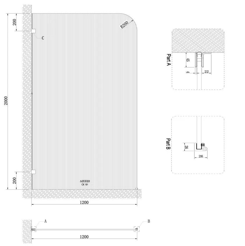 AREZZO design CLEAR walk-in zuhanyfal, bordázott 1200x2000
